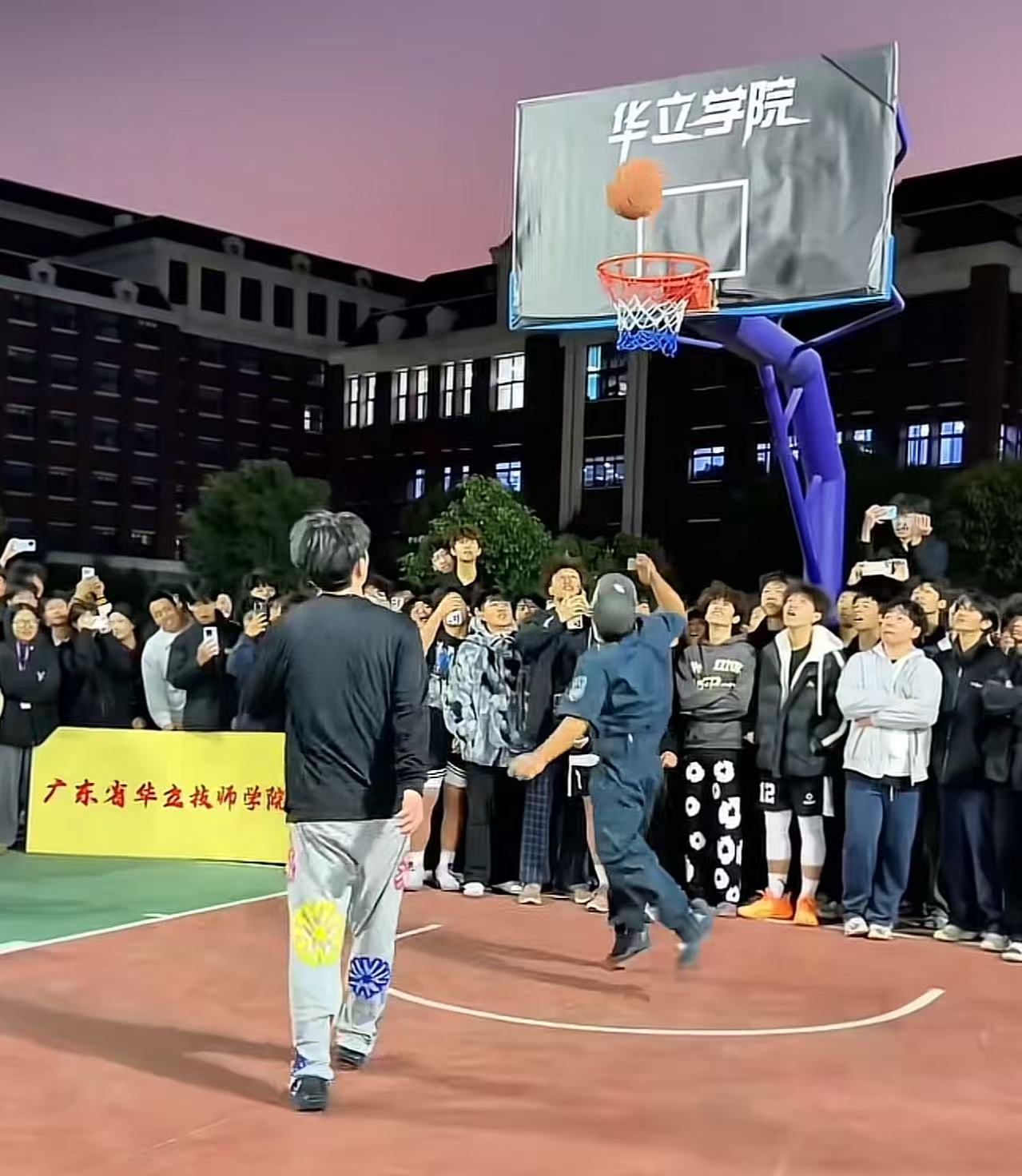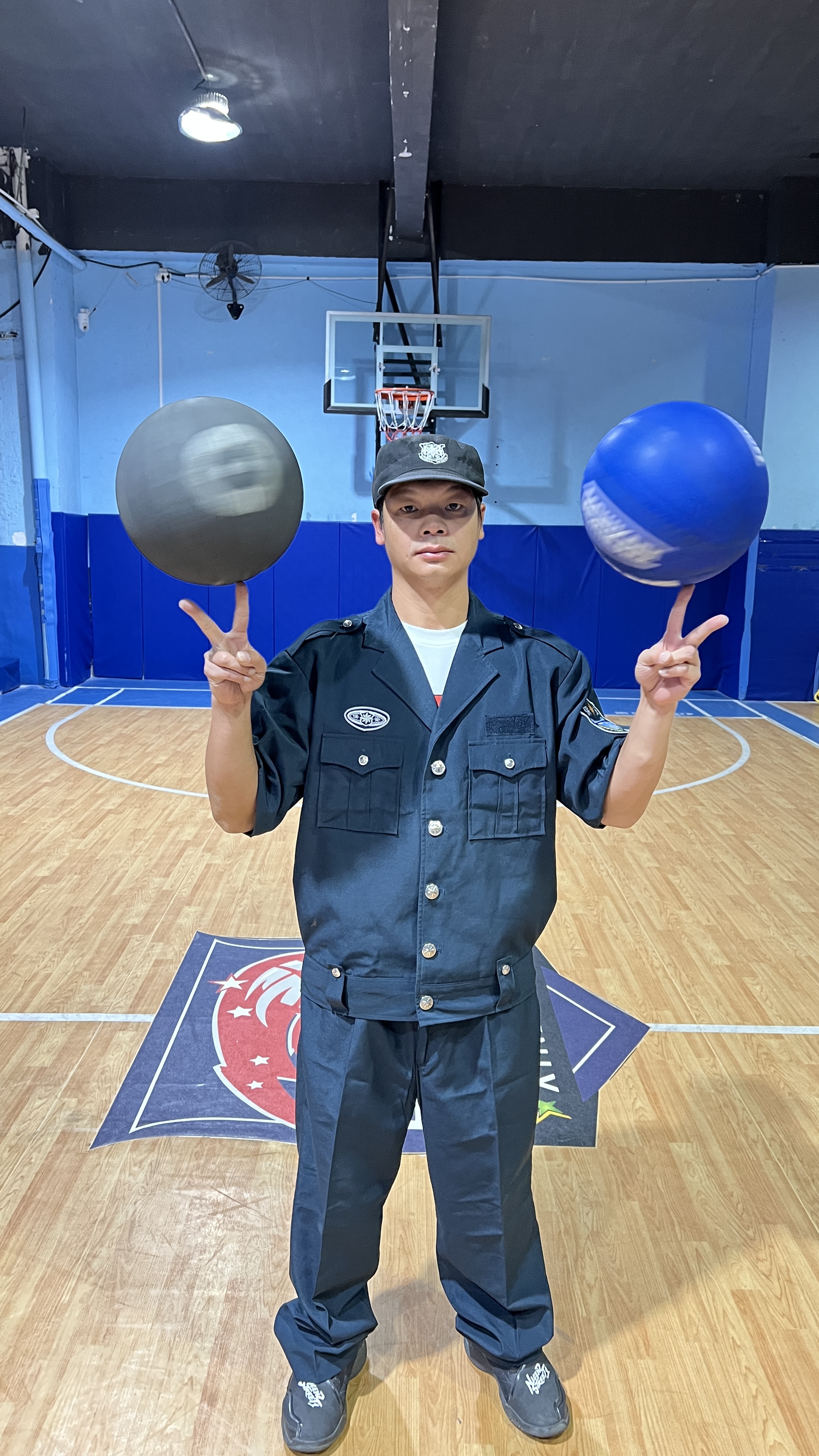 谢国银身着保安服在高校花式打篮球走红